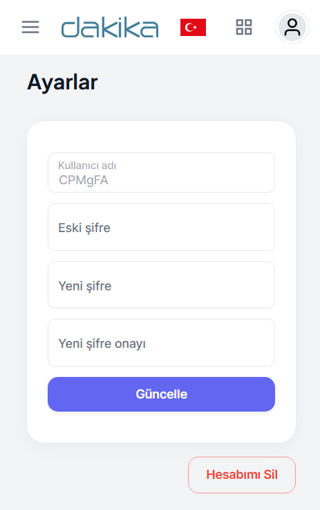 Ayarlar ekranı üzerinden kullanıcınızın şifresini değiştirme işlemini gerçekleştirebilmektesiniz.