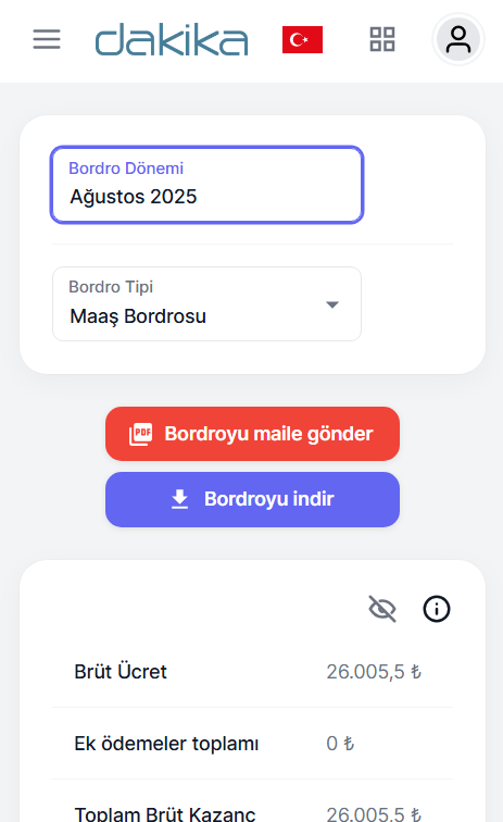 Bordroyu İndir butonuna tıklayarak seçili aydaki bordroyu indirebilmektesiniz.
